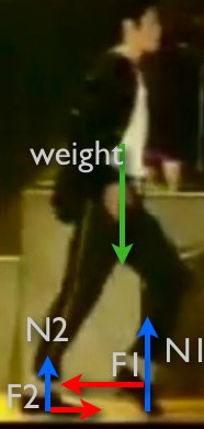 As a side note, I can’t remember where I saw it but there was a great discussion of the history of the moonwalk. If I recall correctly, some were saying Michael didn’t create this move. One thing is for sure, he made it popular. Now for the physics.