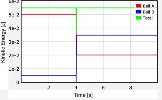 Here is the code (you should take a look). Oh, the final velocities are 0.0636 m/s for ball A and 0.2639 m/s for ball B. Also, here is a plot of the momentum so you can see momentum is conserved.